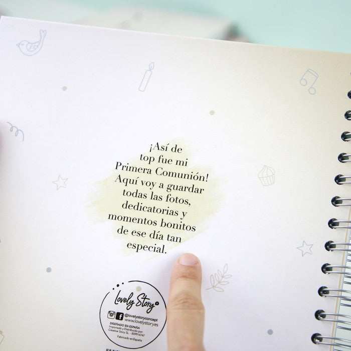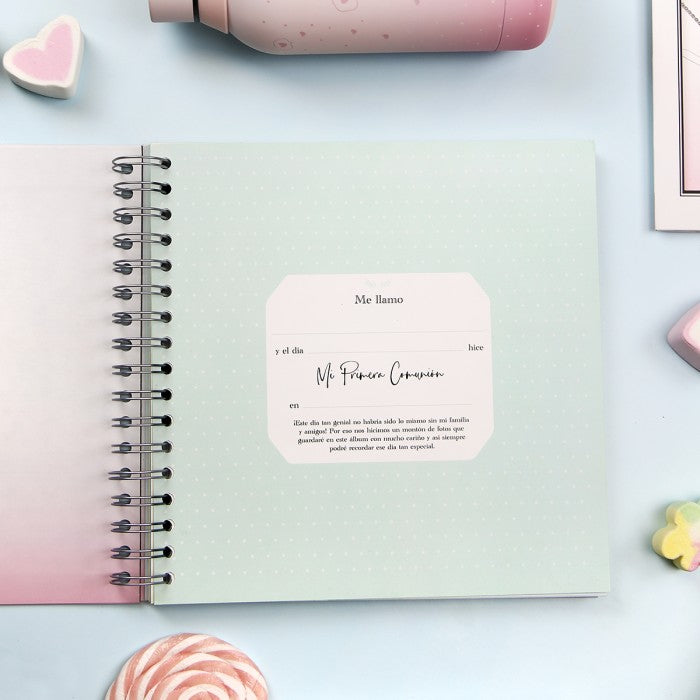 - Álbum de fotos para Comunión¡, con encuadernación en espiral.