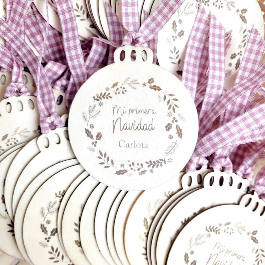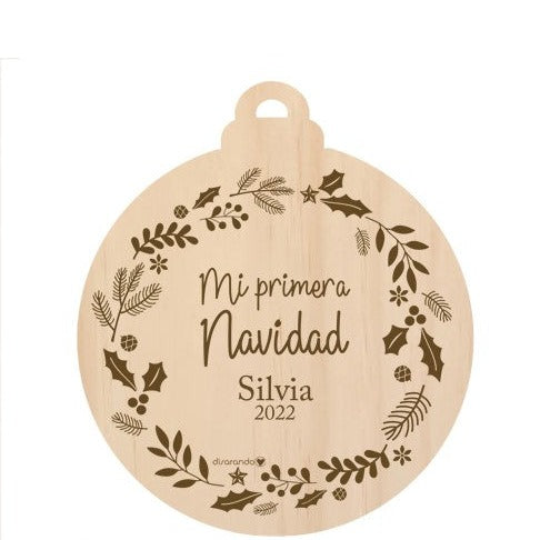 BOLA DE NAVIDAD DE MADERA PERSONALIZADA MI PRIMERA NAVIDAD