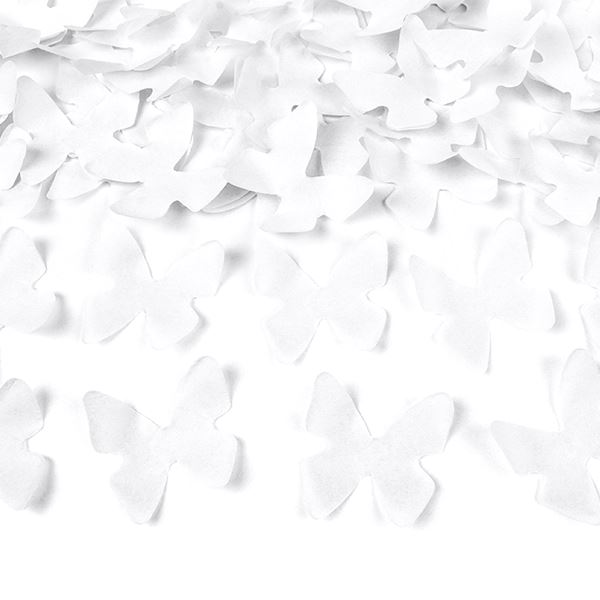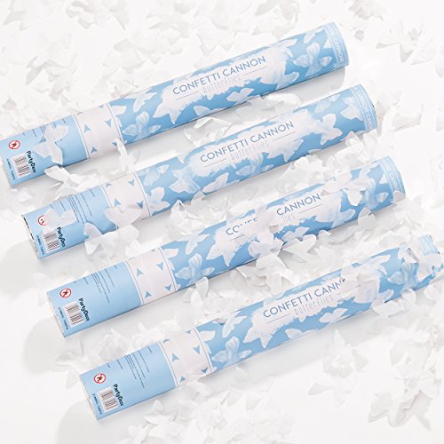Cañón de confeti de mariposas de papel en color blanco, de 40 cm de largo, es ideal para cualquier celebración, creará una lluvia de mariposas ideal para la salida de tu ceremonia o bienvenida a tu evento! MARIPOSAS DE PAPEL BLANCO BIODEGRADABLE