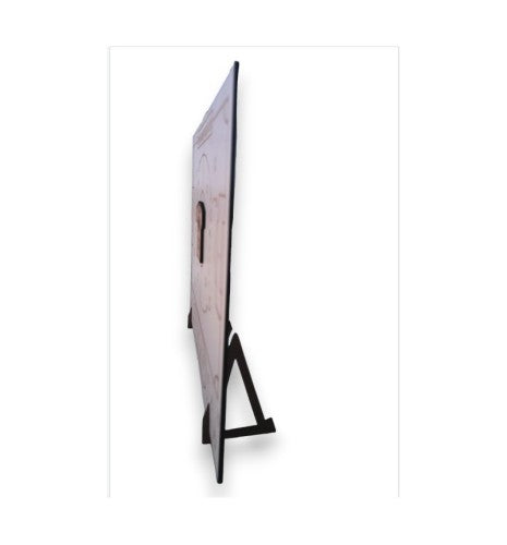 Fabricado en madera, grosor 5 mm, la parte delantera es blanca, la trasera color madera natural. Incluye dos soportes para colocarlo según se muestra. El tono de grabación puede variar al ser un artículo de madera.