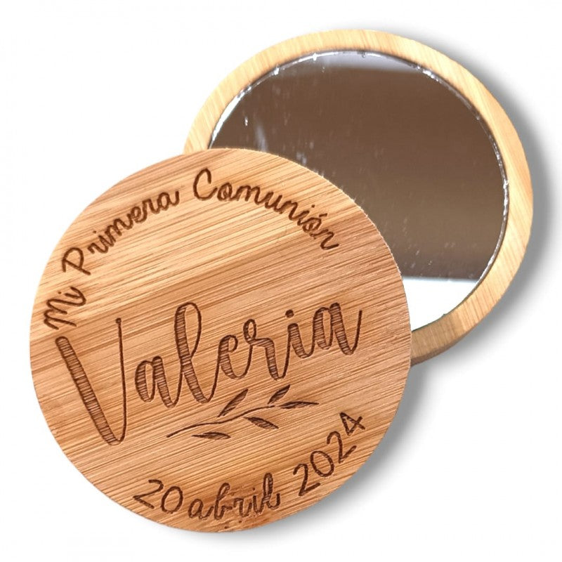 Espejo de línea nature fabricado en bambú. Presentado en caja individual de diseño eco con grabación.