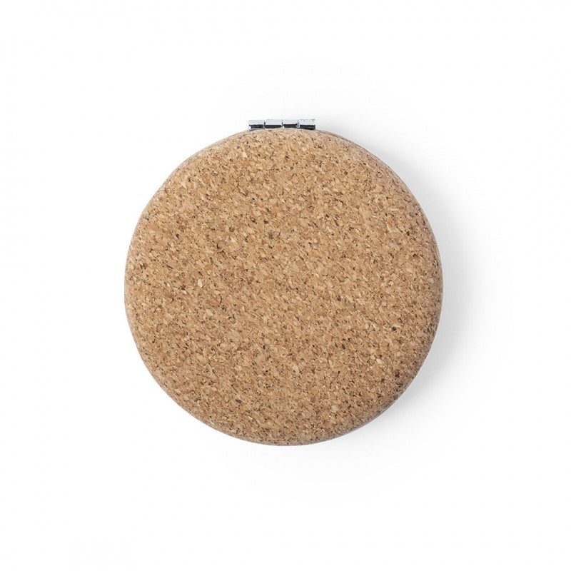 Espejo plegable de línea nature. En combinación de materiales corcho natural y metal cromado. Dos espejos interiores: 1X / 2X. Presentado en atractiva caja individual de diseño eco.