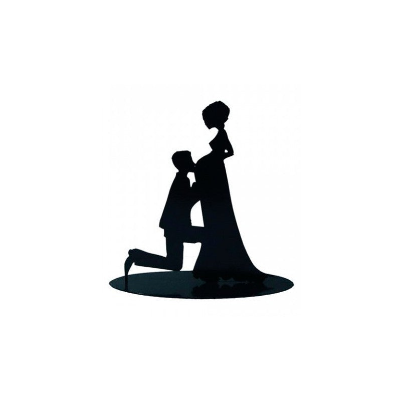 Original y tierna figura de pastel con novia embarazada. La silueta y color negro la hace más especial