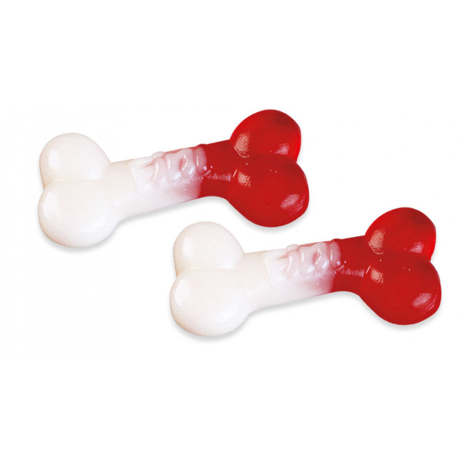 Deliciosas gominolas con forma de huesos y con sabor a nata y fresa. Bolsa de 1kg. Contiene unas 143 golosinas aproximadamente. Cada chuche tiene 7g.
