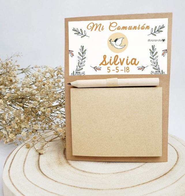 Imán bloc de notas en resistente linea nature. Bloc de hojas en color crema con soporte para minilápiz incluido.