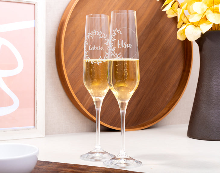 La felicidad hay que celebrarla por todo lo alto y... ¿qué mejor forma de hacerlo que con nuestras copas de cava grabadas? ¡Son geniales para brindar por el amor!