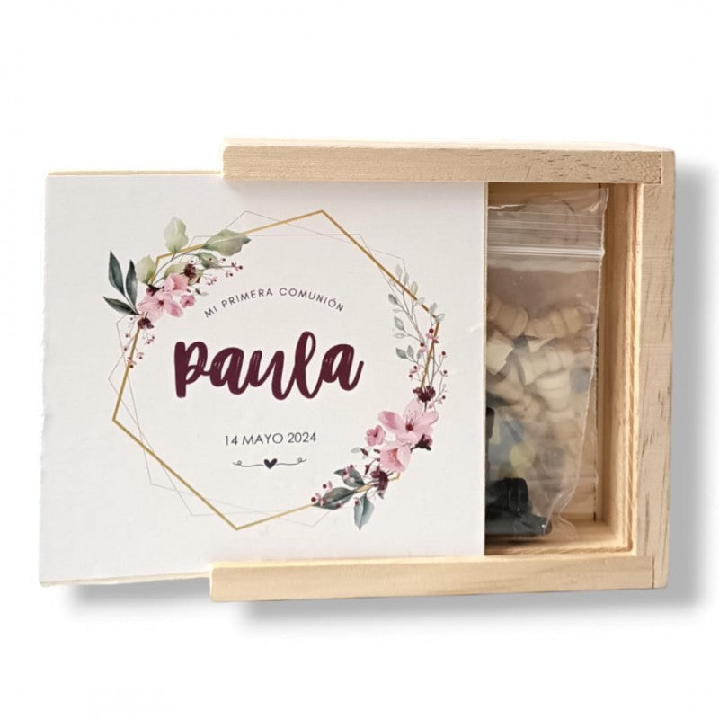 JUEGO PARCHIS, DAMAS Y AJEDREZ EN CAJA CON PEGATINA COMUNIÓN NIÑA