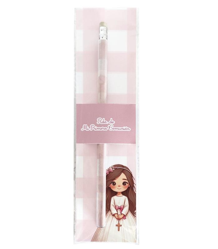 LÁPIZ ROSA EN CARTÓN NIÑA COMUNIÓN