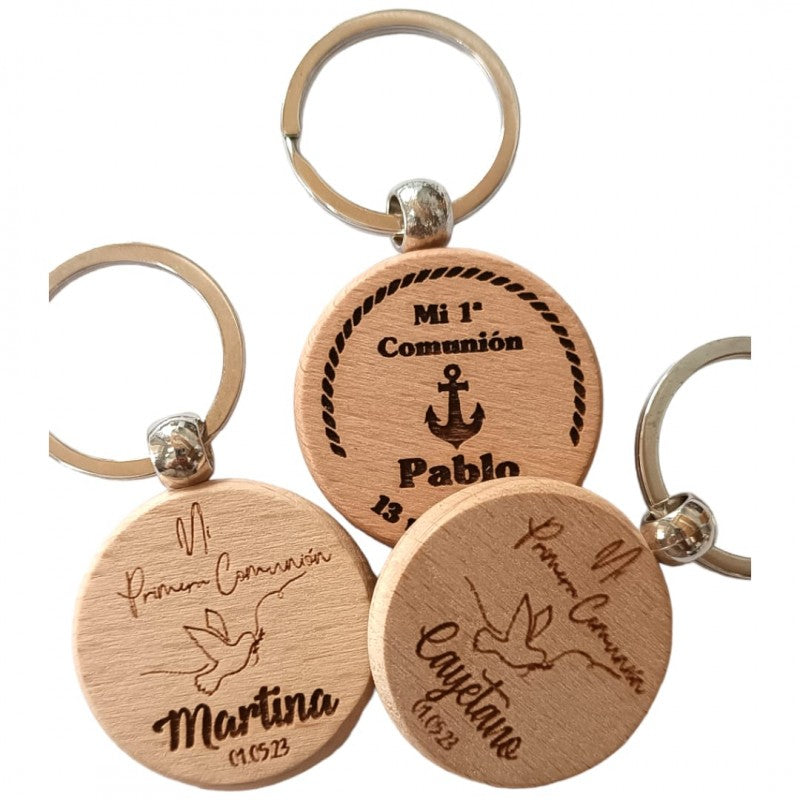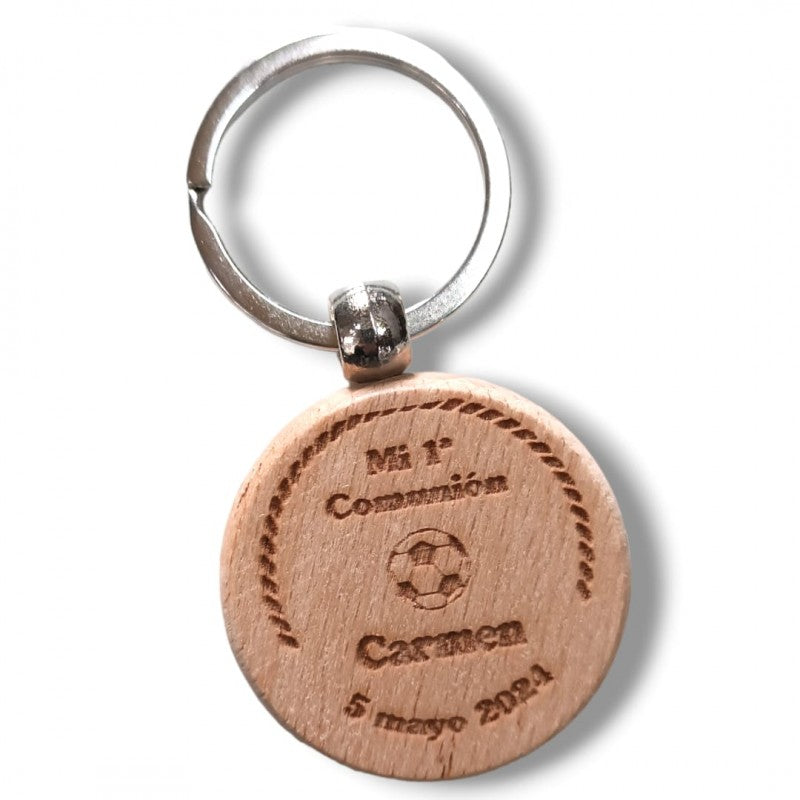 LLAVERO MADERA COMUNIÓN FÚTBOL AZUL