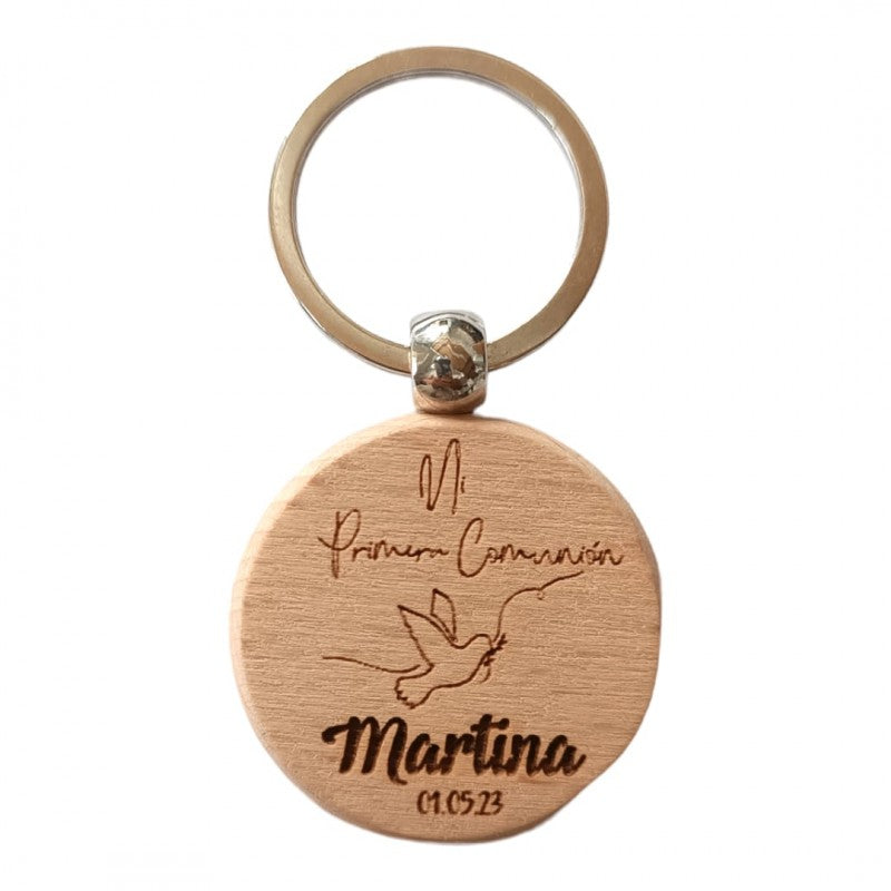 LLAVERO MADERA COMUNIÓN PALOMA GRABADO