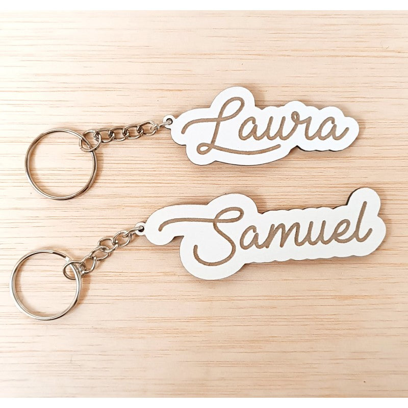 LLAVERO MARCASITIOS NOMBRES DE MADERA BLANCA