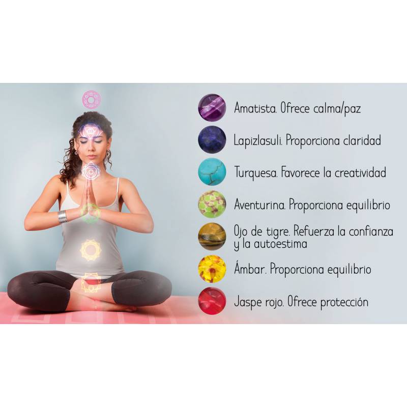 Combina la piedra volcánica con piedras naturales como el amatista, lapizlasuli, turquesa, aventurina, ojo de tigre, ámbar y jaspe rojo.