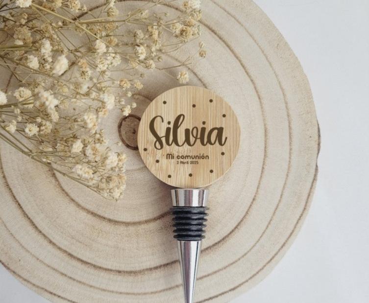 Práctico tapón para botellas con abridor integrado. Fabricado en bambú y acero inox. Incluye aros de silicona en el tapón para un ajuste perfecto al cuello de la botella.